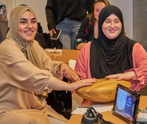 De studenten nemen altijd de Expobike mee: een bakfiets vol technologische hulpmiddelen die deelnemers zelf kunnen uitproberen. Voor deze specifieke bijeenkomst was het een uitdaging voor de studenten om technologie begrijpelijk uit te leggen aan een groep inburgeraars die de Nederlandse taal nog aan het leren zijn. Desondanks wisten de studenten met handgebaren, duidelijke articulatie en ondersteuning van tolken hun boodschap goed over te brengen.