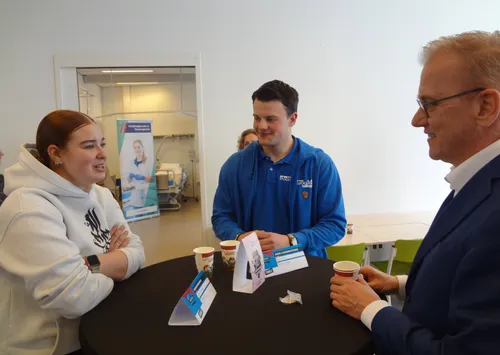 Lisa van der Burg en Esmee van Twist waren de toppers die vanuit mboRijnland in gesprek gingen met een belangstellende minister. Saskia Schenning (mboRijnland) en Erik van der Zwan (WorldSkills Netherlands) heetten de minister en de finalisten van harte welkom. Aansluitend gaf de jarige Lisa (opleiding Verpleegkundige) eerst een demonstratie van een medische handeling en beantwoordde tegelijkertijd vragen van de minister. Daarna ging de minister met iedere finalist even in gesprek.